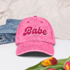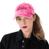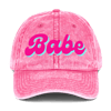 Pink Babe hat with a washed out vintage feel. Choose between printed and embroidered design!
